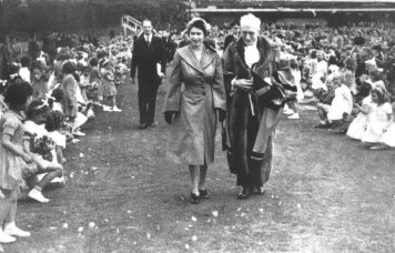 Ivors photograph shows HRH Princess Elizabeth with the Mayor of Hastings, Alderman JD Cooper and the children from our local schools, just as it appeared facing page 44, in the 1953 Childrens Gift Edition of Richard Dimbleby's book. >