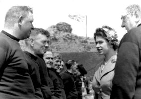 Mr Bunk Harffey, above right, the well-known local fisherman and secretary of the Winkle Club, presented Princess Elizabeth with the very famous "Winkle Brooch"